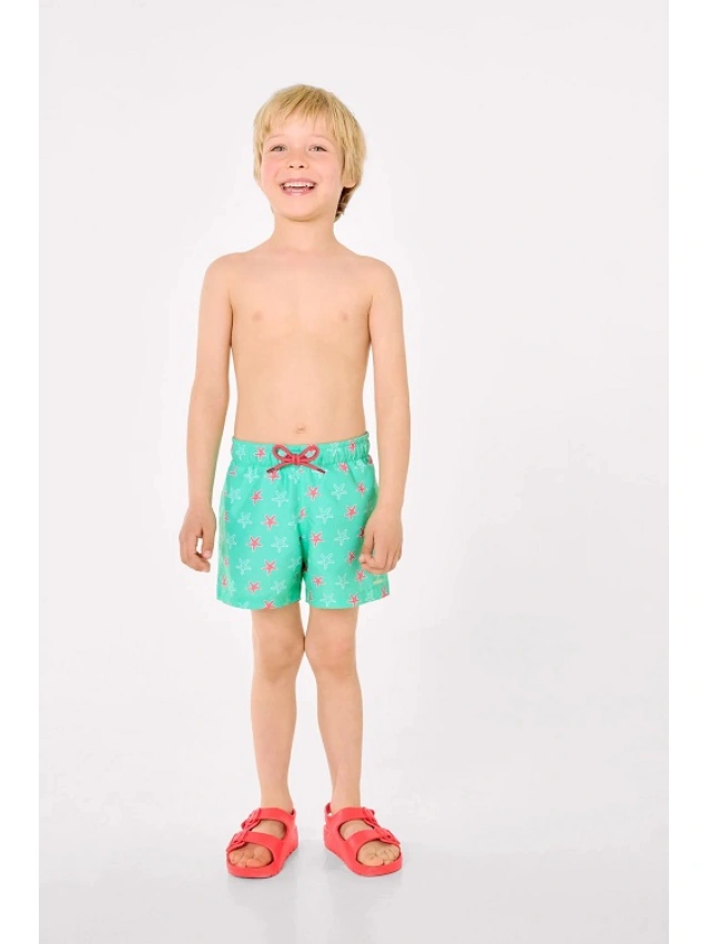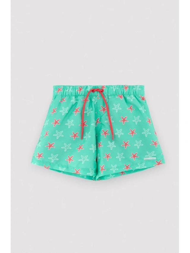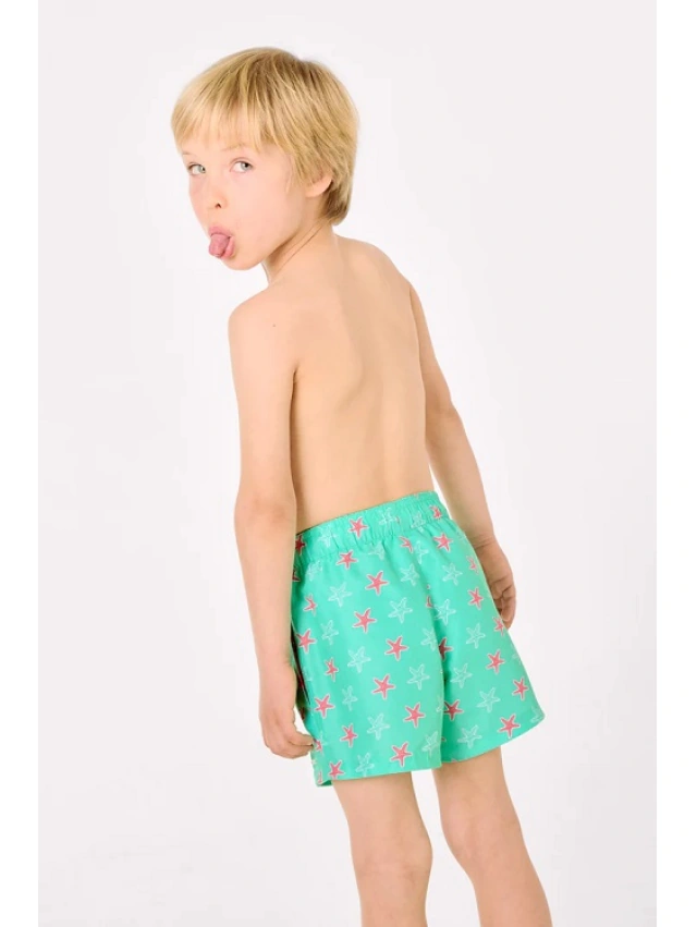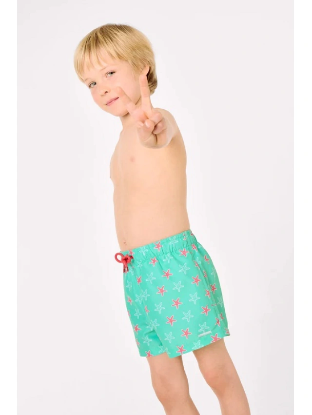 -Bañador corto infantil con estampado de estrellas de mar y cintura elástica.
