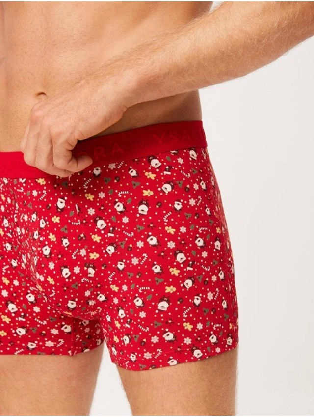 - Christmas Collection. Pack de unos calzoncillos bóxer y un par de calcetines con estampado de motivos navideños, ambos de algodón natural.