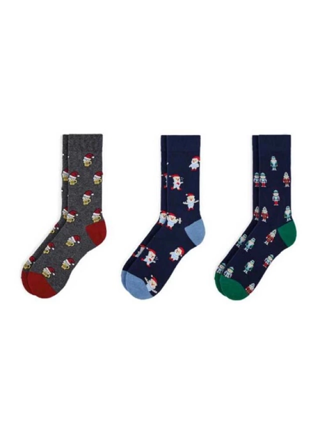 - Pack de 3 pares de calcetines para hombre estampados navidad.