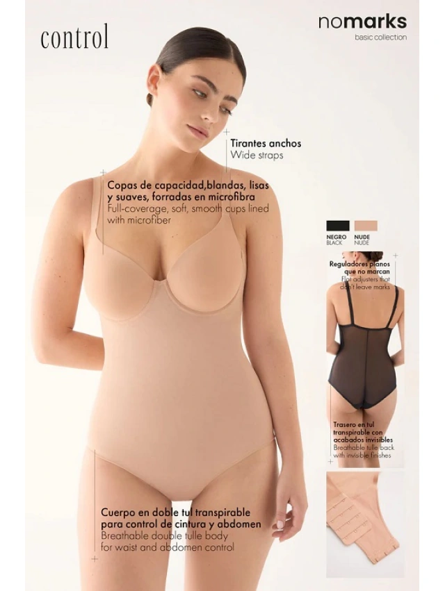 -Cuerpo en doble tul transpirable para control de cintura y abdomen.