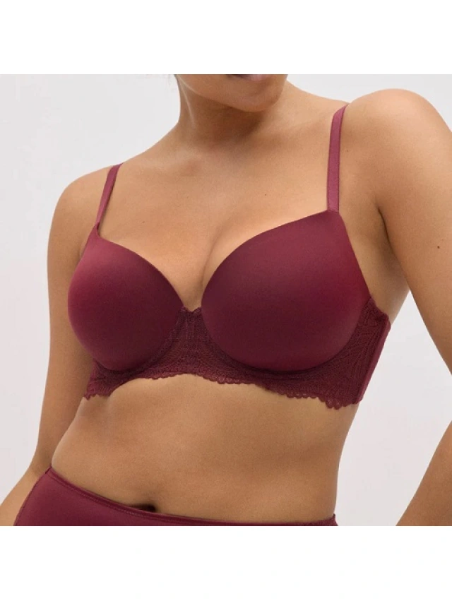 -Sujetador con aro y relleno que combina un acabado liso en las copas con un delicado detalle de encaje en el contorno.