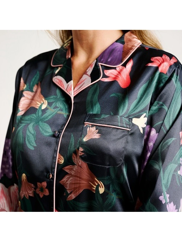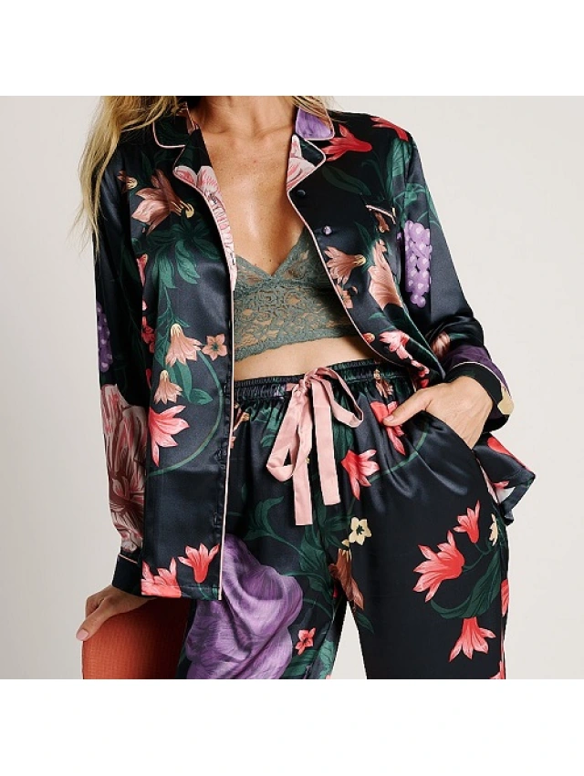 -Conjunto de pijama compuesto por una camisa de manga larga y un pantalón largo.
