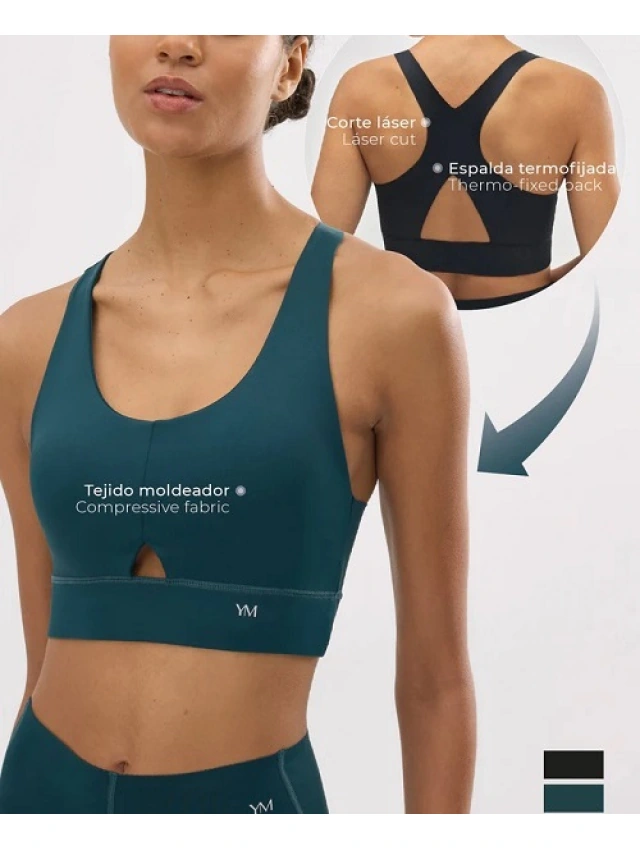 - Sujetador deportivo con relleno extraíble y tejido compresivo, tu mejor aliado para entrenamientos de impacto medio.
