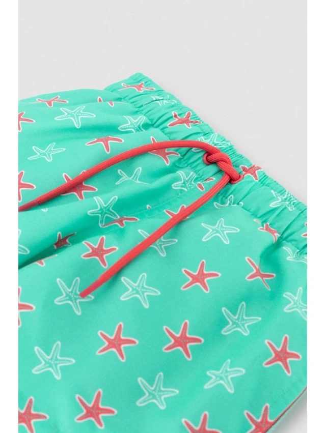 -Bañador corto infantil con estampado de estrellas de mar y cintura elástica.