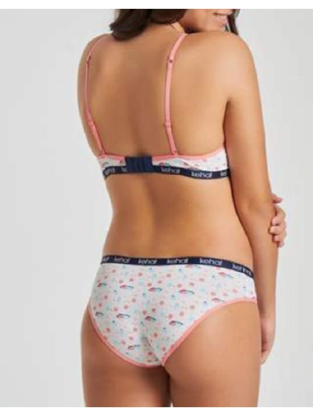 - Conjunto juvenil con relleno sin aro + braguita a juego estampada. - Composición: 95% Algodón - 5% Elastano.